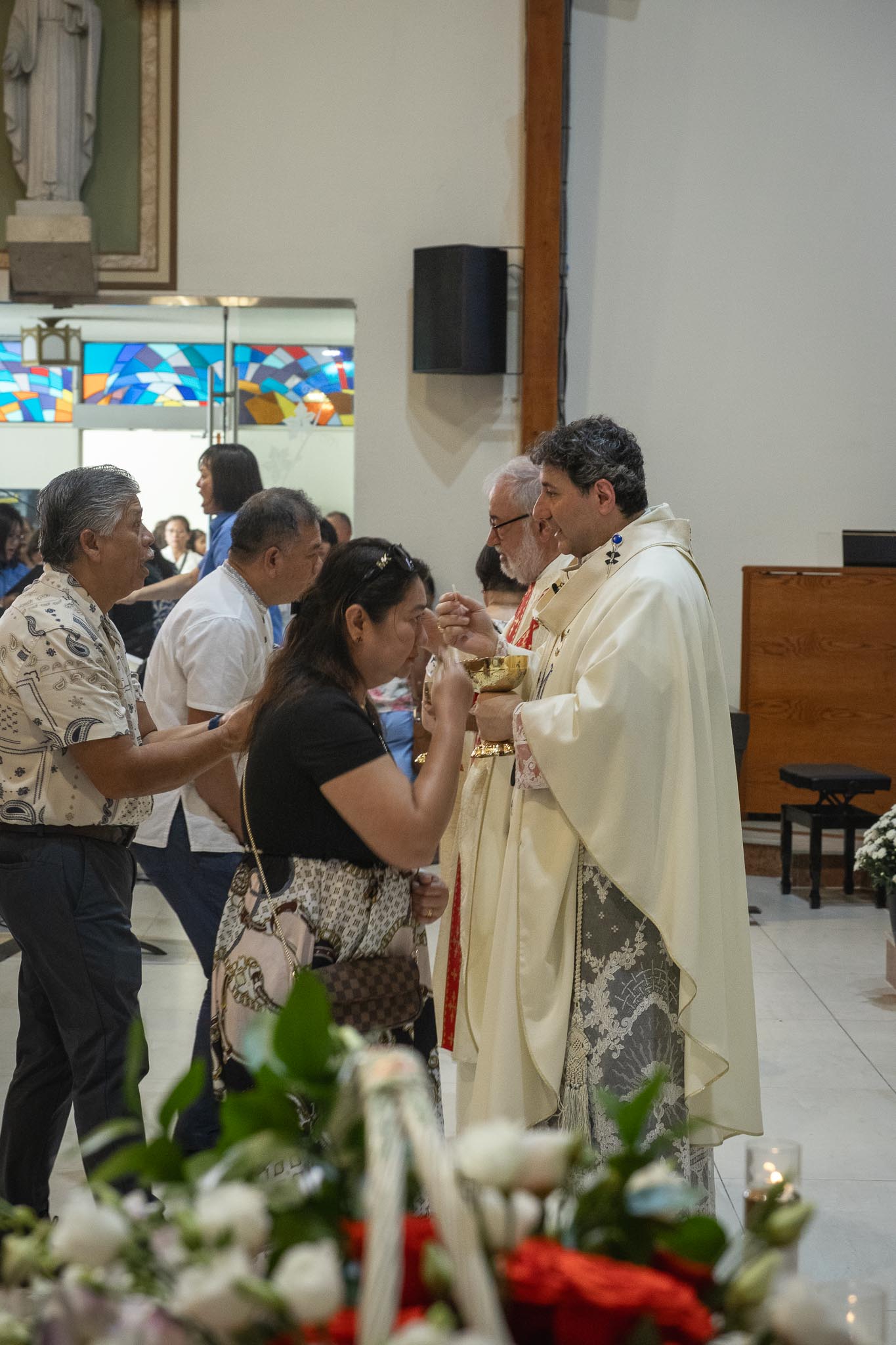 One of the most poignant moments of the celebration was the presentation of cultural offerings from the parish’s diverse communities. Baskets symbolizing Italy, the Philippines, and Korea were brought forward during the Mass, celebrating the parish’s rich cultural mosaic and its inclusive spirit. The gesture exemplified the unity in diversity that characterizes St. Paschal Baylon Parish.
